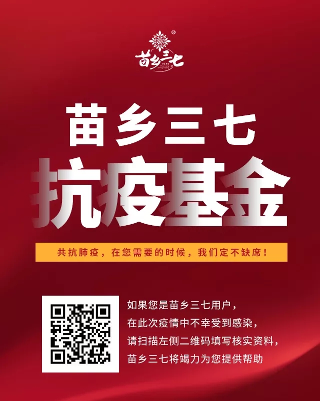 三七雖好,不是神藥!如果您是服用苗鄉(xiāng)三七的用戶,在此次疫情中不幸感染并確診為新型冠狀病毒肺炎,請(qǐng)識(shí)別上圖二維碼告訴我們,我們將竭力為您提供幫助!
