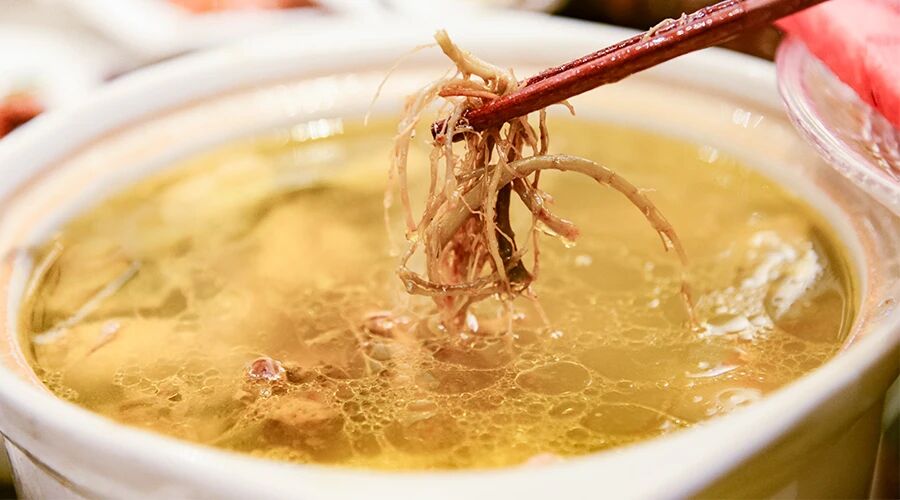 春季煲湯時,可加入三七須根或三七切片與雞肉、排骨或春季時蔬同燉,沒有三七切片和三七須根的朋友,可在湯品出鍋前10分鐘加入三七粉。湯品溫和,適合全家人食用,尤其適合中老年人和工作壓力大的上班族。