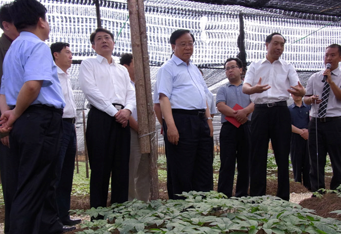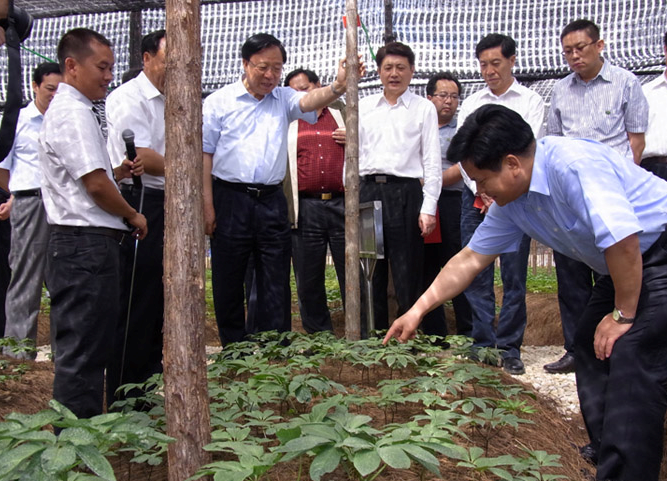 2010年5月25日,甘肅省委書記、省人大常委會主任陸浩,省委副書記劉偉平等領(lǐng)導(dǎo)及相關(guān)工作人員一行36人,在時任云南省省委副書記現(xiàn)任云南省省長李紀(jì)恒,省委副秘書長梁宗華,文山州委書記李培、州委副書記、州長黃文武,州委副書記羅國權(quán)等領(lǐng)導(dǎo)的陪同下來到我公司正在建設(shè)的位于硯山縣盤龍鄉(xiāng)的文山三七科技園,在三七科技示范園,陸浩書記一行認(rèn)真聽取苗鄉(xiāng)公司董事長余育啟對科技園的建設(shè)規(guī)劃、及科技園對三七產(chǎn)業(yè)的意義。在實(shí)驗(yàn)示范田里詳細(xì)的聽取了關(guān)于三七輪作年限、三七輪作障礙、三七土地資源的利用、三七病蟲害防治、三七對周邊經(jīng)濟(jì)的拉動、三七促進(jìn)農(nóng)民增收等方面的介紹。