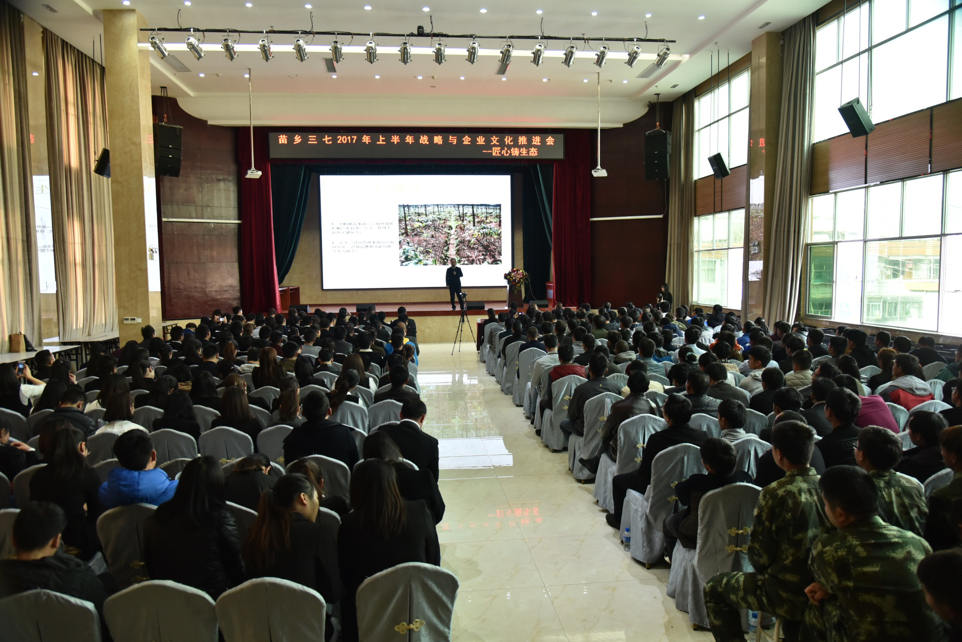 2017年3月7日,苗鄉(xiāng)三七2017年上半年戰(zhàn)略與文化推進(jìn)會在文山普陽大酒店召開,股份公司、科技公司、實業(yè)公司、昆明分公司共338名代表參加了會議,本次會議的主題為“匠心鑄生態(tài)”。
